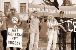 | Активисты незарегистрированной Национал-большивистской партии вышли на митинг, как на праздник, предварительно уведомив местную администрацию. Фото: Александр Тимофеев. |
