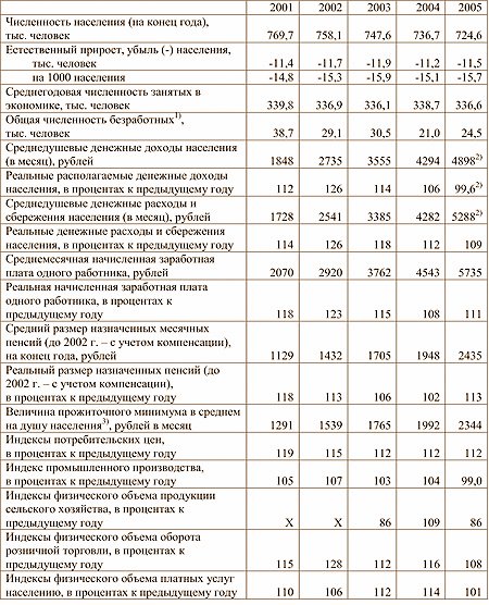 В 2001–2005 годах численность сельского населения уменьшалась в среднем за год на 2 процента, городского - на 1 процент, что объясняется более высоким соотношением уровня смертности и рождаемости сельских жителей.