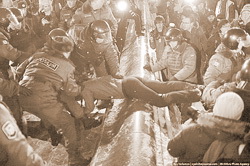 Жестокий разгон митинга начался тогда, когда многие уже покинули площадь. Около трехсот человек во главе с Сергеем Удальцовым из «Левого фронта» остались, собравшись возле фонтана. Удальцов еще со сцены достаточно безответственно предупредил: «Я не уйду с этой площади, пока Путин не уйдет из Кремля».
